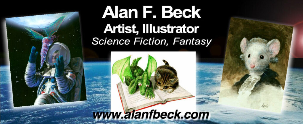 Alan F. Beck has been an artist and illustrator for over 30 years. His work has been exhibited in art shows and cons all across the country. He has won numerous awards and honors including two Chesley award nominations and a Hugo Award finalist nomination. His paintings and prints can be found in collections in the US, Canada and Europe. He has published “The Adventures of Nogard and Jackpot” and is creator of the “Mouseopolitan Museum of Art”. His art can be found in Space and Time magazine, The Fantasy Art Bible, and assorted book covers.