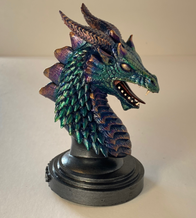 David Lee Pancake’s sculptures and illustrations represent a varied and unique repertoire of his personal interests. He pursues a wide variety of subject matter that includes dragons, superheroes, D&D Characters, abstracts and horror sculptures and paintings. His talent expresses equally in clay or canvas. David loves to play with textures in his sculptures and his attention to detail is revealed in his careful application of dragon scales and feathers. He states: “I love detail and texture and angels, dragons, and other mythical creatures allow me the freedom to play with the clay and bring to life what’s inside my head.” The fantasy creations of David Lee Pancake are gracing homes and businesses all over the world and we are sure you won’t forget his name, just think about your favorite breakfast food.